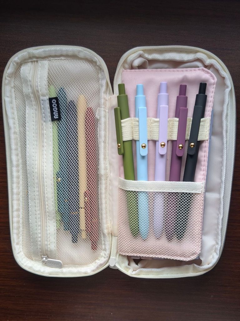 Don’t skip over this part – the case alone could justify the $20 price tag. It’s not your typical flimsy pen holder. You get three distinct sections, including one deep expandable pocket that actually fits stuff, plus a handy front pocket when closed. They even skipped loud branding in favor of a charming little saying on the front. Nice touch.